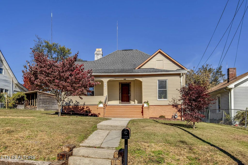 Reimagined and ready to start making lasting memories! This 1920 gem in Old North Knoxville has been updated with quality modern conveniences yet still imbodies the charm of yesteryear. Stately steps lead to a wide, covered front porch with ample room to create a fantastic outdoor living space. The large great room features a German wash stone wall, surrounding the fireplace, with a solid wood mantel and bench seat. Original hardwood floors under the LVP in the great room and primary bedroom would look fabulous with a little DIY project! An arched doorway to the kitchen reveals top of the line shaker white, soft close custom cabinets, with an abundant number of deep drawers, including a pull-out trash cabinet, brand new deep undermount stainless kitchen sink and faucet, and impressive high-end marble counter tops! All brand-new stainless kitchen appliances remain - including a side-by-side refrigerator with ice and water dispenser. The pendant above the sunny kitchen sink, and the chandelier in the dining area boast stunning, tiffany style lighting. A perfectly placed guest powder room is located just off the kitchen. The primary bedroom, with ensuite bathroom and large closet, has the cutest reminder of days gone by with an original beveled mirror above the old fireplace mantel. The brand-new primary bathroom features a large, tile surround shower with glass doors, sink vanity with soft close drawers and handsome granite top, new lighting, mirror, faucets, and comfort height toilet. The two guest bedrooms share a full bathroom with everything new - tub, sink, vanity, comfort height toilet, and lighting. The laundry area is in the wide hallway between the bedrooms and has built-in shelves to hold all your supplies.